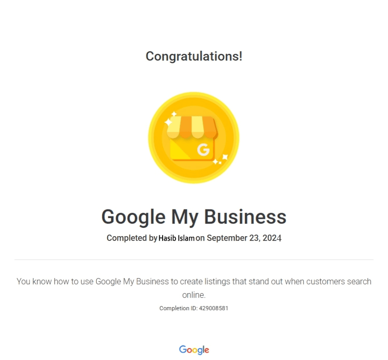 This certification confirms specialized skill in setting up, optimizing, and managing high-performing Google Business Profiles (GBPs). We are verified in utilizing GBP features to: